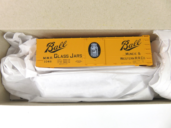 Accurail 1316 HO Scale 36' Wood Sheath Boxcar Muncie & Western Ball Glass Jars