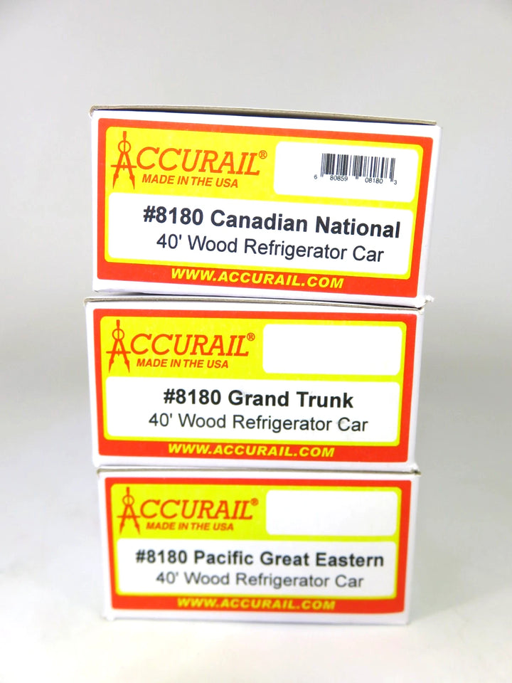Accurail 8180 HO Scale 40' Wood Reefer 3-Car Set CN, GT, PGE 3-Pack NIB