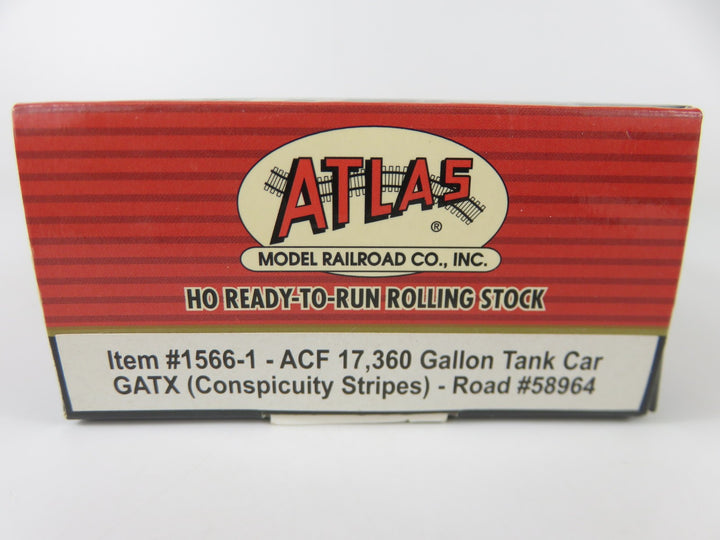 Atlas 1566-1 HO Scale 17,360 Gallon Tank Car GATX Conspiuity Stripes #58964 NOS