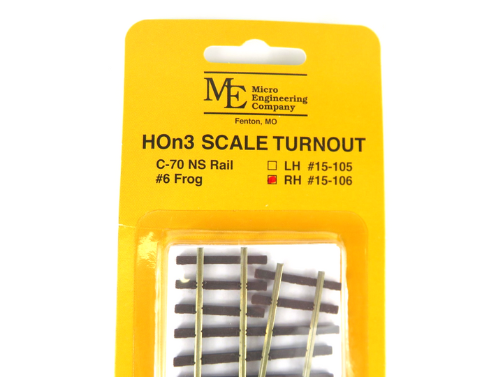 Micro Engineering HOn3 15-106 Nickel Silver Turnout Code 70 Right Hand #6