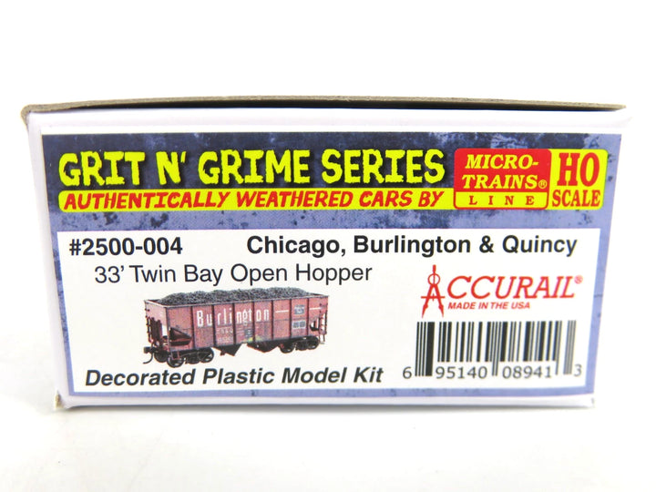 Micro Trains Accurail 2500 004 HO Scale CB&Q 33' 2 Bay Open Hopper Kit Weathered