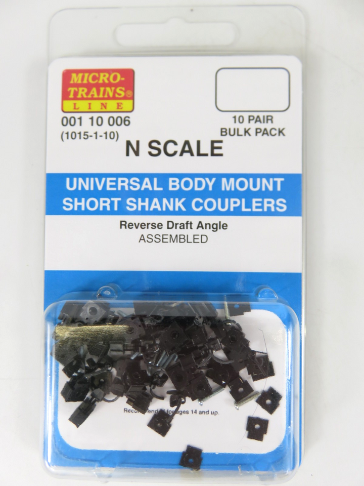 Micro-Trains 001 10 006 (1015-1-10) Universal Body Mount Coupler Short Shank Assembled (N Scale) These are precision-engineered replacement couplers designed for N scale model railroad cars.