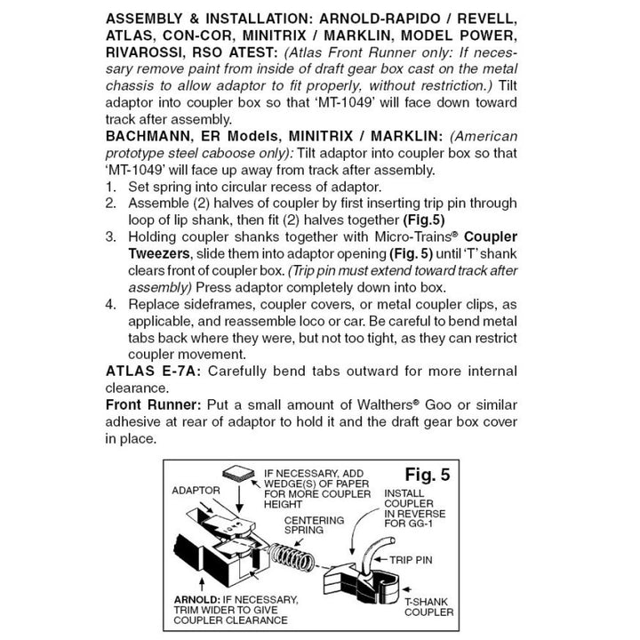 • Purpose: Converts locomotives to Micro-Trains coupler system