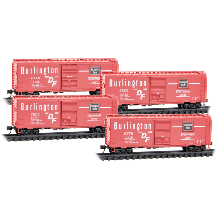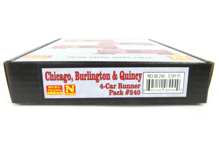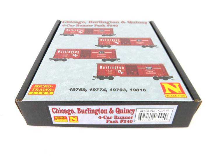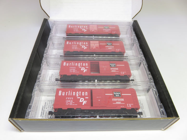 Micro Trains N Scale 98300240 CB&Q 40' Standrd Boxcar 4 Car Runner Pack NIB