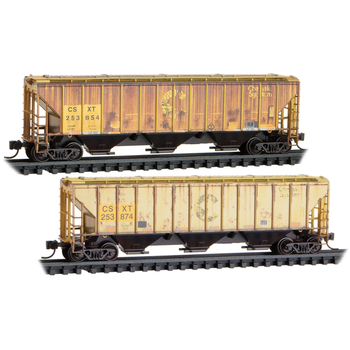 Micro Trains N Scale 98305096 CSX 2-Bay Covered Hopper 2-Pack Weathered