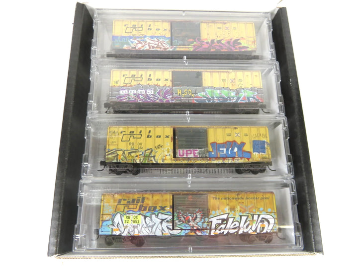 Micro Trains N Scale 98305099 Railbox 50' Rib Side Boxcar 4-Pack Weathered NIB